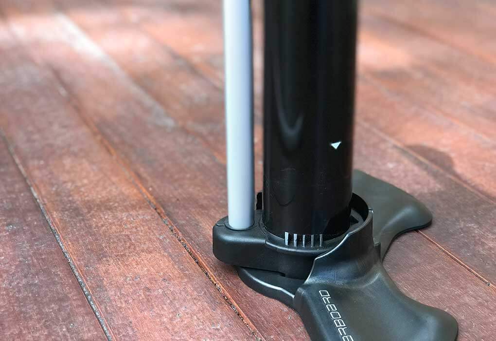 - der Fuß der Pumpe wurde extra verstärkt und verbreitert, sodass ein sicherer Stand beim Aufpumpen gewährleistet ist.
